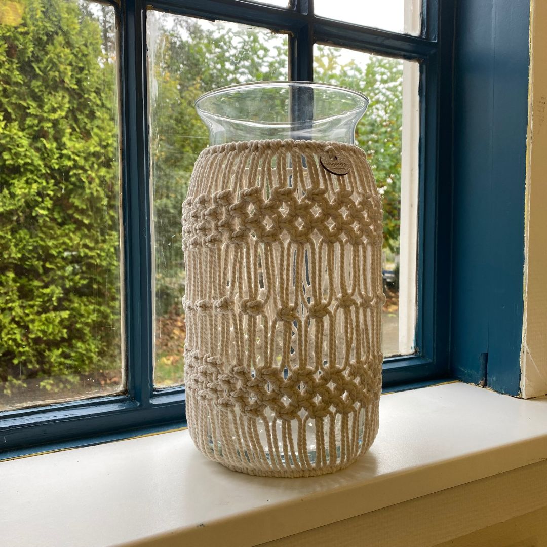 Items: vaas/windlicht, plantenhanger of wandkleedje