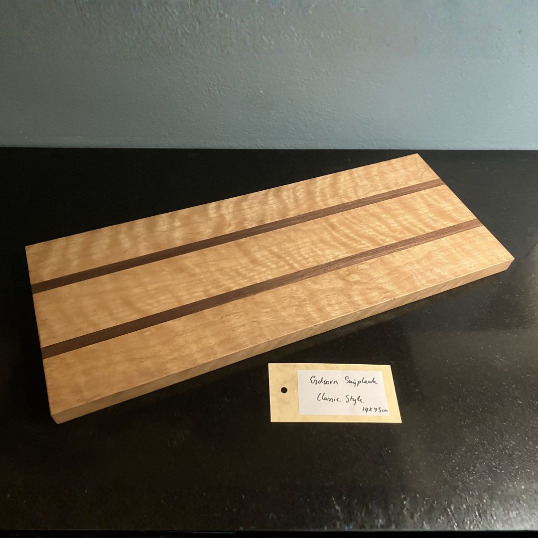 Een handgemaakte snijplank van prachtig esdoornhout, uitgevoerd in een klassieke, tijdloze stijl.